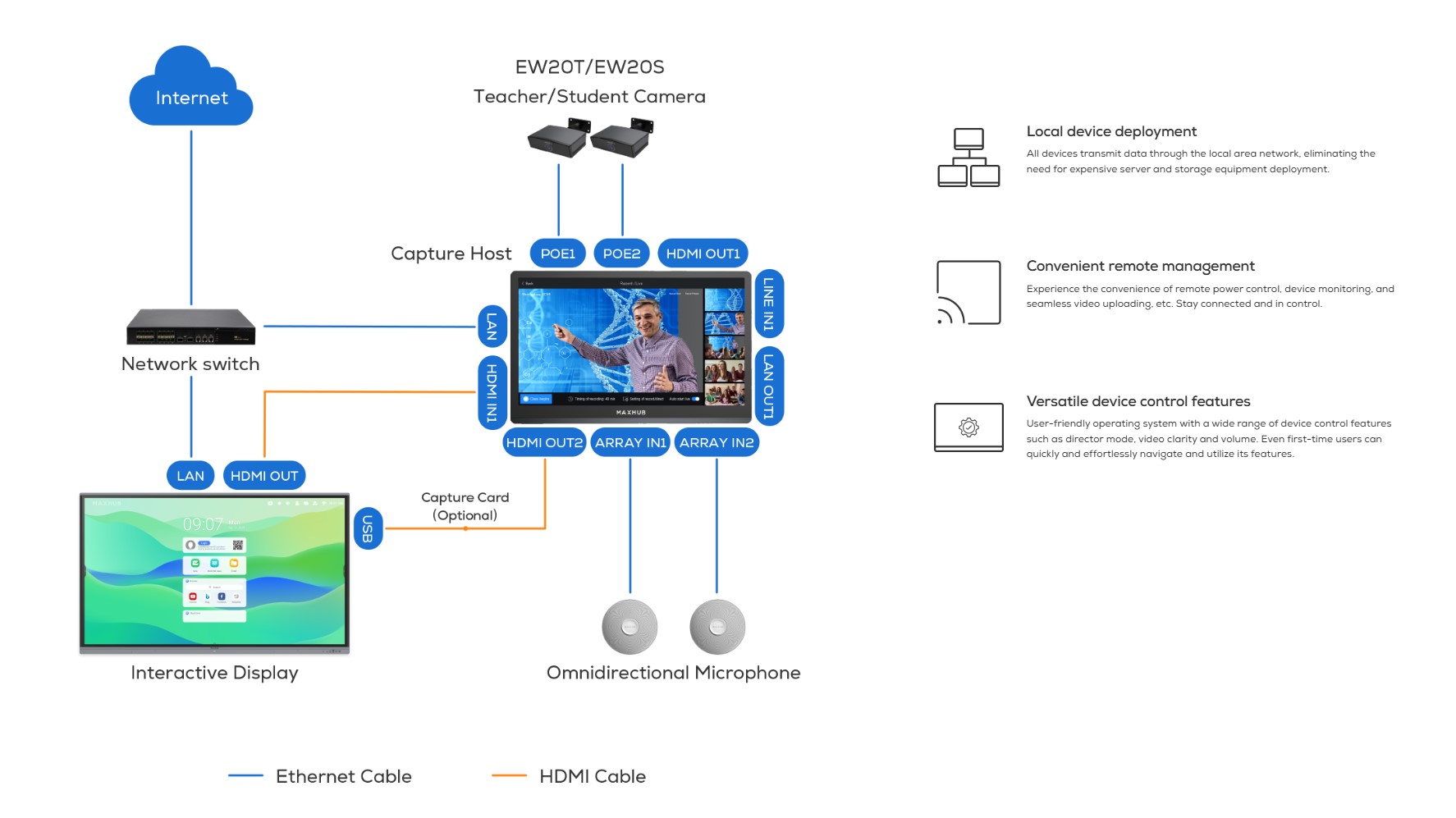 Hệ thống Capture System từ MAXHUB đang dẫn đầu trong việc trang bị thiết bị ghi hình hiện đại. Với sự kết hợp giữa thiết bị ghi hình, màn hình tương tác và các công cụ hỗ trợ, hệ thống cho phép giáo viên dễ dàng thực hiện giảng dạy kết hợp (hybrid teaching) hoặc thu thập tài nguyên khóa học.